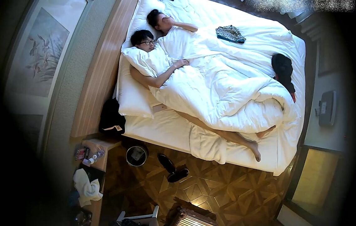 [国产]宾馆上帝视角偸拍有点像姐弟恋的热恋情侣,皮肤光滑白嫩骚女友边看A片边被干,还给毒龙